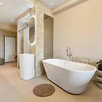 Dans la salle de bain, les clients de la propriété Nice Renting - Hugo - Luxury Honeymoon Suite Terrace Park View Free Parking ont accès à un sèche-cheveux et des draps de bain. Vous trouverez également une douche à l'italienne et une toilette séparée.